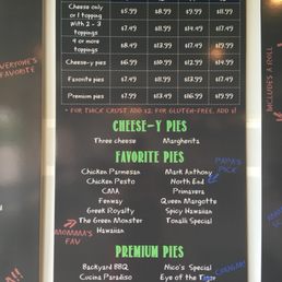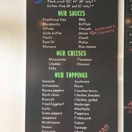 | BBQ Chicken Pizza | BBQ sauce, bacon, onions, mozzarella | $23.95 |